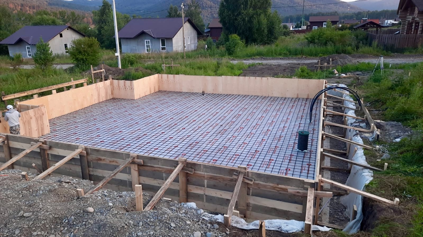 Сейчас наша бригада подготовила фундамент перед заливкой. Это полностью индивидуальный проект нашего заказчика. Общая площадь двухэтажного дома составляет 231,23 квадратных метров.