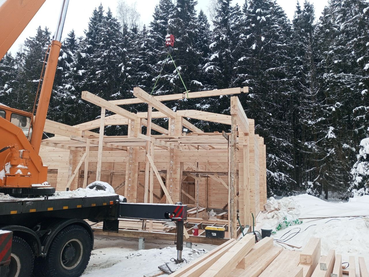 Далее мы приступим к монтажу стропильной системы. Двухэтажный дом общей площадью 243,84 квадратных метра. Это индивидуальный проект нашего заказчика.