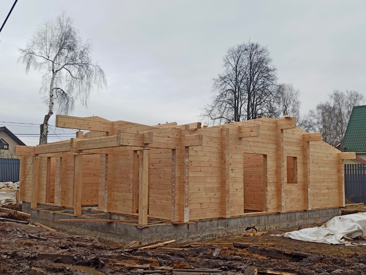 Завершили сборку сруба дом в Московской области