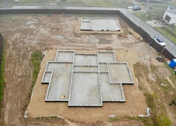 Наша бригада завершила заливку фундамента. Дальше мы приступим к сборке сруба. Дом будет построен из клееного бруса из сосны сечением 205х185 мм. Это полностью индивидуальный проект нашего заказчика. Общая площадь дома составляет 426,98 квадратных метров.