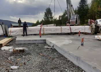 Сейчас наша бригада приступила к сборке сруба дома. В строительстве мы используем клееный брус собственного производства из сосны с сечением 245х185 мм. Это индивидуальный проект нашего заказчика. Одноэтажный дом с мансардой. Общая площадь дома 190,64 м2.