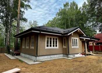Сейчас мы выполняем чистовую отделку в доме.В строительстве этого дома мы использовали клеёный брус из кедра 205х185 мм.Площадь дома составляет 195 кв.м.