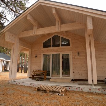 Клееный брус — современный, эстетичный и безопасный материал. Благодаря высокотехнологичности его производства — время на монтаж дома сокращается, а также появляется возможность круглогодичного строительства, чем не могут похвастаться другие технологии.