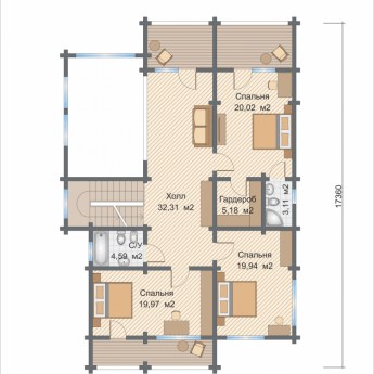 По проекту в здании есть 3 спальни на втором этаже, которые можно переоборудовать под другие любые необходимые помещения.