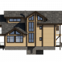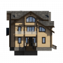 Также, в доме есть большая гостиная, совмещенная с кухней-столовой. На первом этаже кабинет, на третьем этаже расположен домашний кинотеатр и пространство для бильярдной.