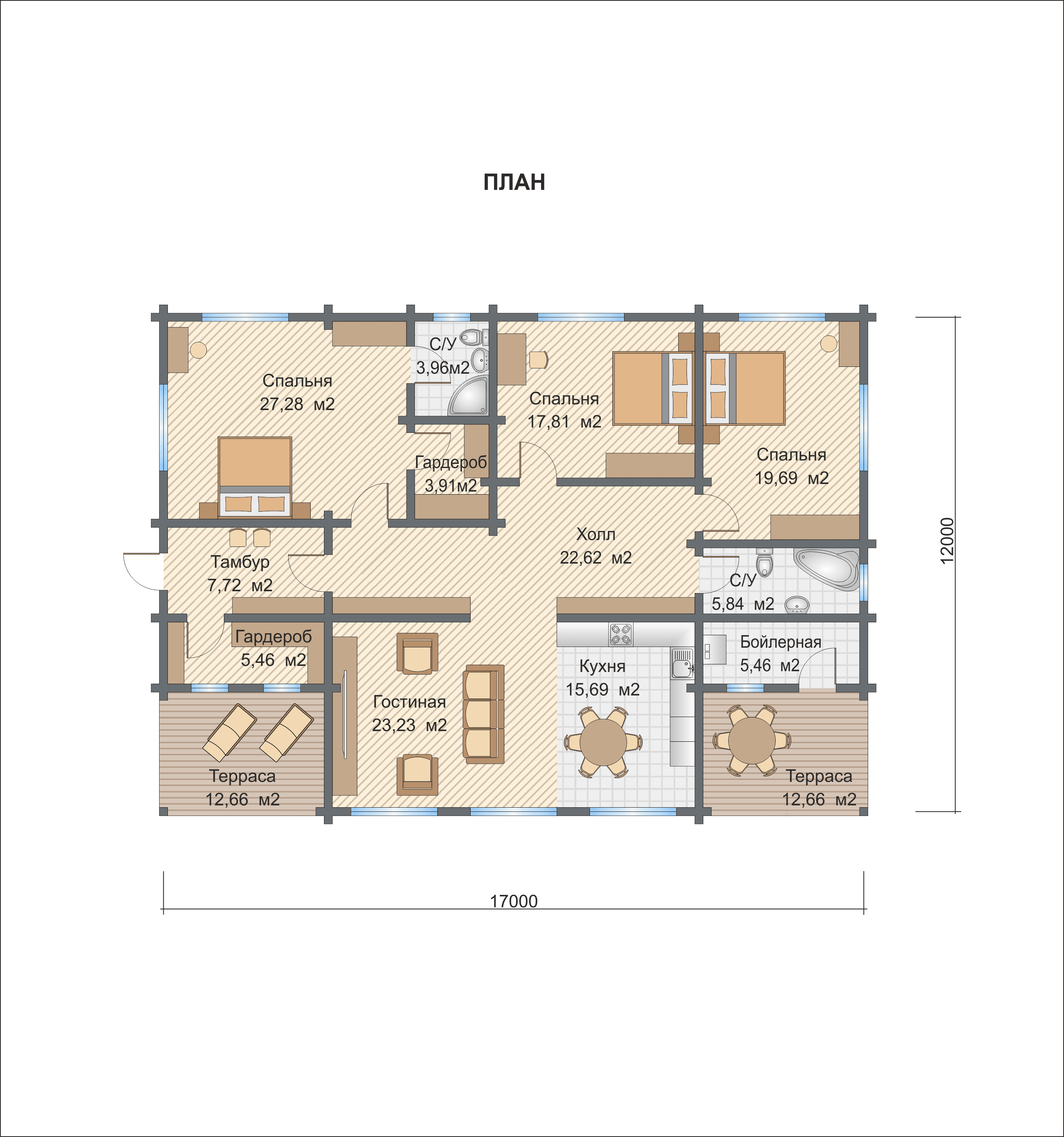Базовые планировки Дом из клееного бруса Мадрид 1