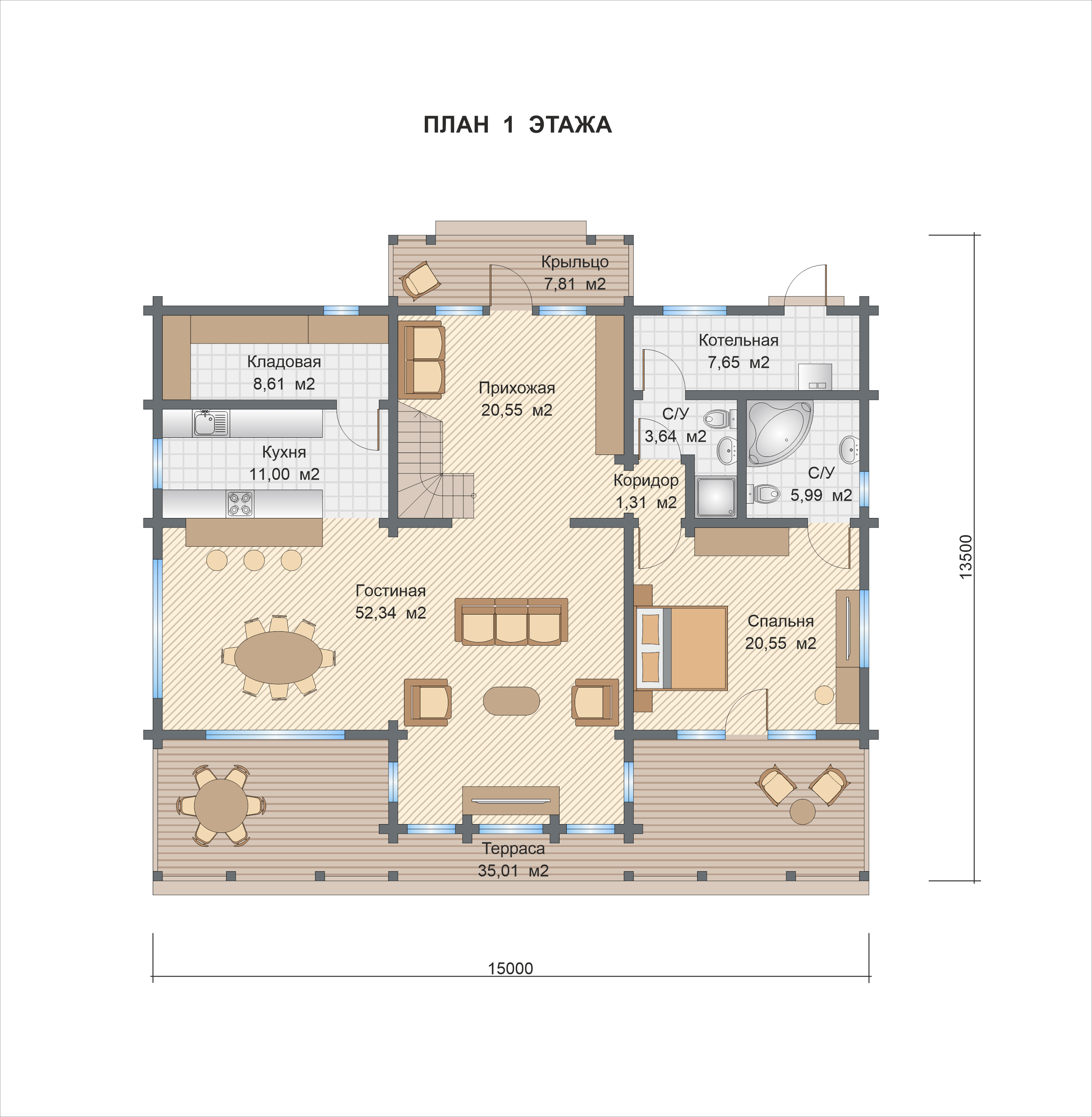 Базовые планировки Дом из клееного бруса Валенсия 1